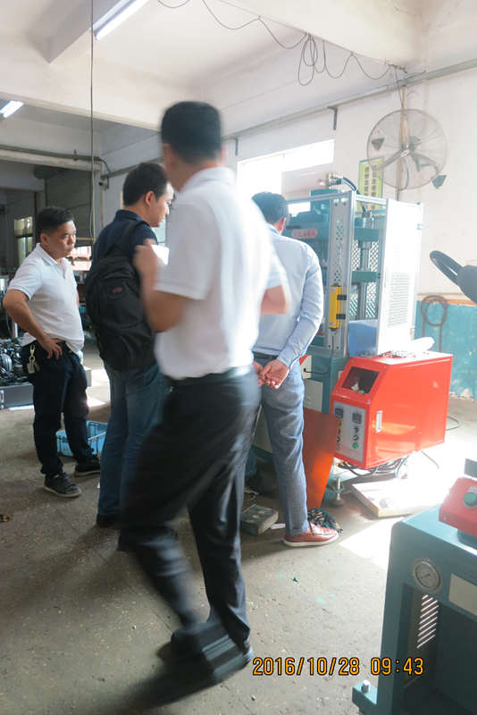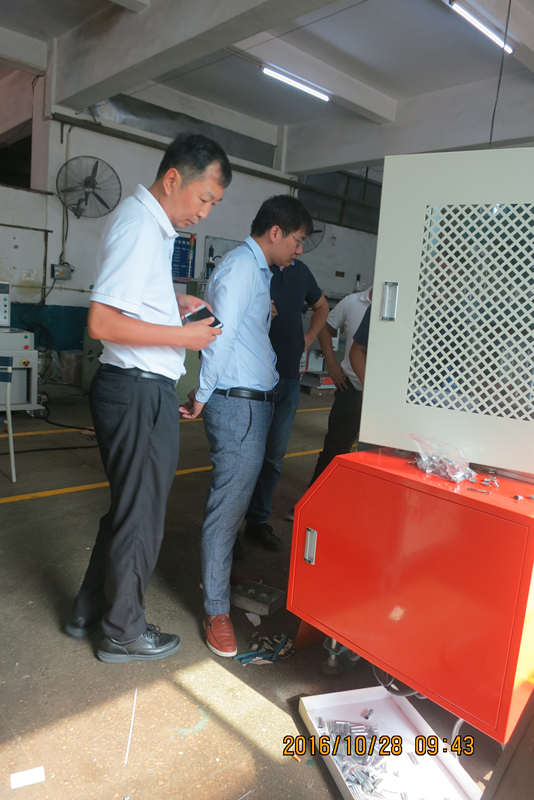 客戶考察圍觀員工測試機械設(shè)備